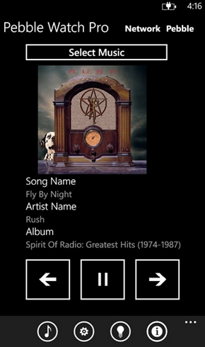 После этого вы сможете просматривать на экране своих часов Pebble сетевые оповещения, сообщения в Twitter и напоминания календаря. Кроме того, вы будете получать сигнал от умных часов, когда уровень заряда батареи будет достигать отметок в 50%, 40%, 30%, 20% и 10%. Также сигнал будет подаваться, если ваш смартфон потеряет сигнал 3G, 4G или Wi-Fi. Функция управления музыкой смартфона с Pebble для устройств на Windows Phone 8 также будет доступна. Пользователь сможет начинать воспроизведение песни или ставить ее на паузу, осуществлять навигацию по трекам и так далее.