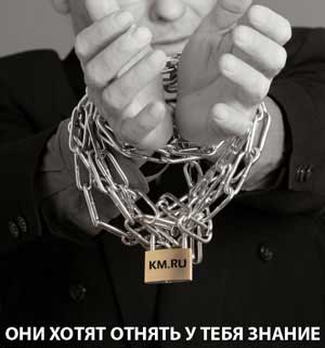 Всем адмнинистраторам, небезразличным к судьбе бесплатных электронных библиотек, закрыть на своих рабочих местах доступ к сайтам *.km.ru. Ихний сайт является развлекательным. Это и будет основанием.
