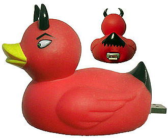 Японская компания Solid Alliance в начале года представила несколько моделей флэш-драйвов в виде утят. Американская TikiMac в ответ на решение от Solid Alliance выпустила "дьявольскую" утку.