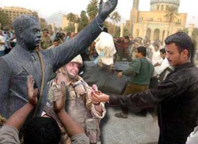 ![]() "Восток – дело тонкое" – эту сентенцию многие склоняли на все лады, но умом так и не поняли. На Востоке почет и уважение – тому, кто сильнее всех. Пока самым сильным был Саддам Хусейн, "простые иракцы" клялись перед объективами телекамер умереть за него. А доверчивые политики за семью морями объясняли глупому электорату, что это есть подлинный патриотизм. Теперь, когда Саддам Хусейн исчез, электорату придется объяснять, почему люди, которых три недели бомбили, целуют портреты американского президента, плюют на изображения собственного и грабят багдадский офис ООН – организации, сделавший всё, чтобы ничего такого не случилось. (Утро.ru) ![]() |