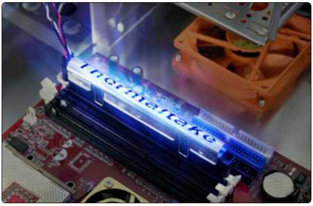 Неугомонная компания Thermaltake приготовила очередной подарок «ненасытным» до различных неоновых огоньков любителям моддинга. На сей раз, её расчётливый взор обратился в сторону оперативной памяти, набор под названием TrueLight Heat Spreader, представляет собой алюминиевые теплооотводные пластины с вмонтированными туда 5-ю синими светодиодами: