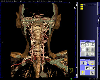 Компания Siemens опубликовала первые в мире клинические изображения сонных артерий (фото), полученных с помощью компьютерной томографической системы SOMATOM Sensation 64, которая использует 64 "среза" для анализа анатомии человека и обеспечивает беспрецедентные диагностические данные менее чем за 10 секунд. Согласно доктору и профессору Баутцу, профессору Института Радиологической Диагностики в Нюрнберге, об изображениях по человеческой анатомии такого качества, резкости и скорости раньше приходилось только мечтать.