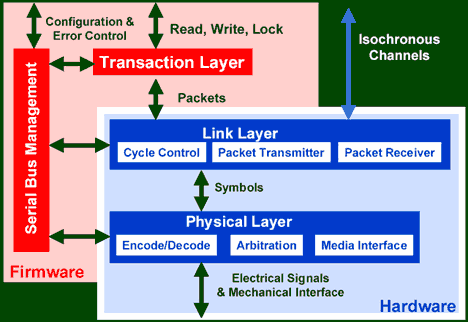 IEEE 1394 делится на несколько уровней. Выглядит это так: