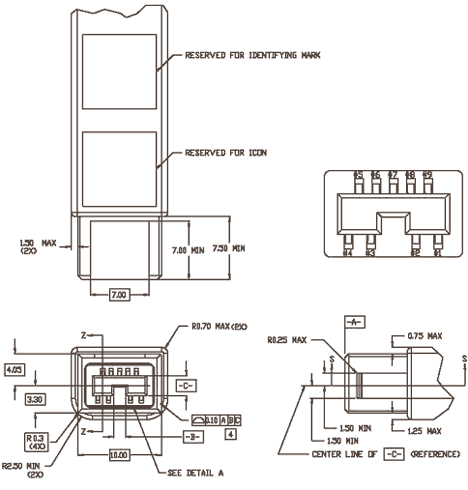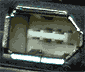 Для обеспечения обратной совместимости, в 1394b устройствах возможно использование старых разъёмов, но "чистое" 1394b устройство будет использовать свой, новый разъём, который не похож ни на один из используемых ранее. Означает ли это, что не будет никакой возможности подключить устройство со старым интерфейсом к новому? Не думаю. Подобные опасения уже высказывались с появлением четырёхконтактных фишек для IEEE 1395. Тем не менее, ничего подобного не произошло, появились 4 на 6 IEEE 1394 кабеля, которые полностью решали проблему. Логически и электрически 1394b устройства должны быть обратно совместимыми с своими предшественниками, поэтому никаких проблем в кабеле новый разъём/старый разъём я не вижу. Тем не менее, разъёмы изменились. Фотографий новых разъёмов у меня нет, поэтому придётся ограничится их чертежами, взятыми из драфта спецификации.