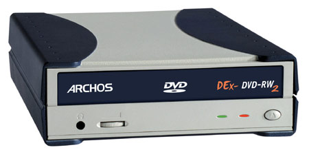Archos анонсировала внешний записывающий DVD-привод, незамысловато называющийся DEx DVD-RW. Передача данных осуществляется по интерфейсу USB 2.0. Привод поддерживает запись дисков следующих форматов: