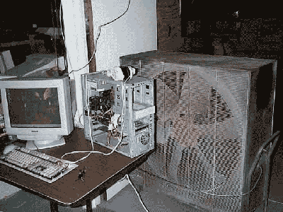 01/04/2004 15:04, Рожкевич Кирилл Наконец-то компания Zalman решила отойти от уже порядком надоевшей серии продуктов CNPS(Computer Noise Prevention System) и представила новую, совершенно противоположную ей линейку Sound Annihilation. Начиная с этого момента, любой оверклокер сможет полностью насладится всеми прелестями «лёгкого шуршания миниатюрного вентилятора»: По словам представителей компании, новинка предназначена для установки рядом с любым системным блоком и обладает максимальным воздушным потоком в 10 000 CFM при скорости около 5 000 RPM и уровне шума >200 dBA. Как видите, совсем не зря система зовётся «звуковое уничтожение», при таком звуке не то, что мозги, всё тело может запросто придти в полную негодность и именно поэтому в комплекте с холодильной установкой поставляется фирменный, утеплённый и звукоизолированный скафандр: Ну, круто! Got from